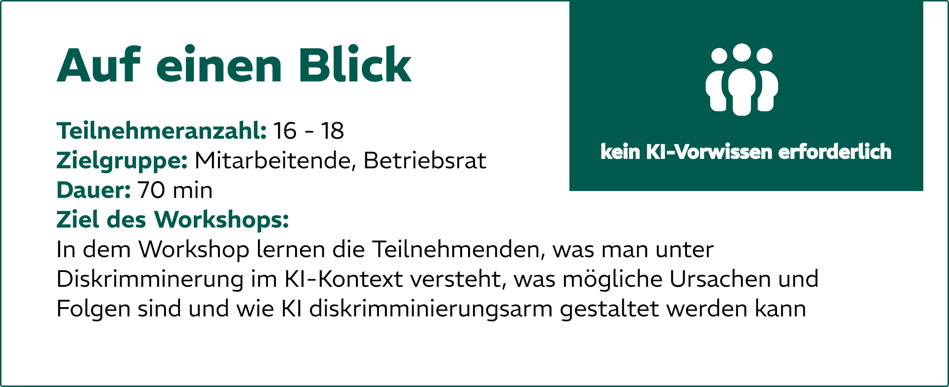 Vorkenntnisse: Für die Teilnahme am Workshop „Diversity“ sind keine Vorkenntnisse im Bereich KI erforderlich.
