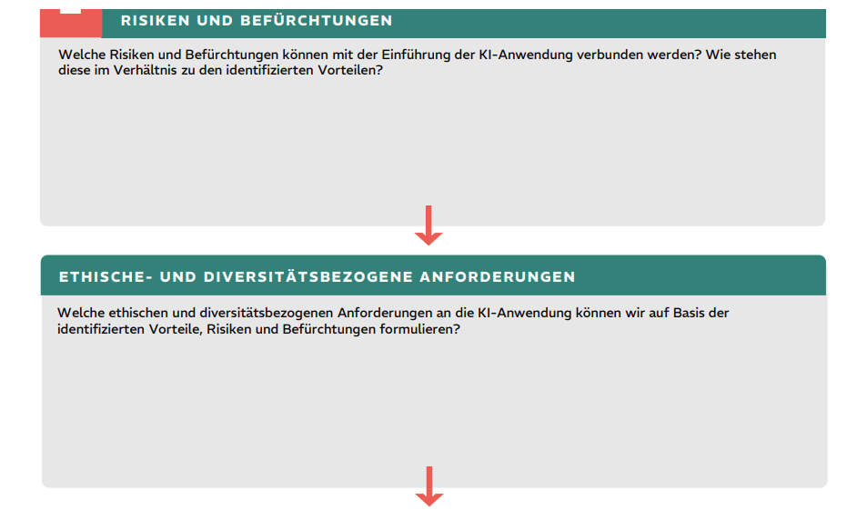 - Diversity-AI-Canvas: Lerne mit dem Diversity-AI-Canvas das Potenzial und die Herausforderungen des Einsatzes von KI anhand eines bestimmten Anwendungsfalls kennen und finde heraus, wie diskriminierungsarme KI-Systeme gestaltet werden können
